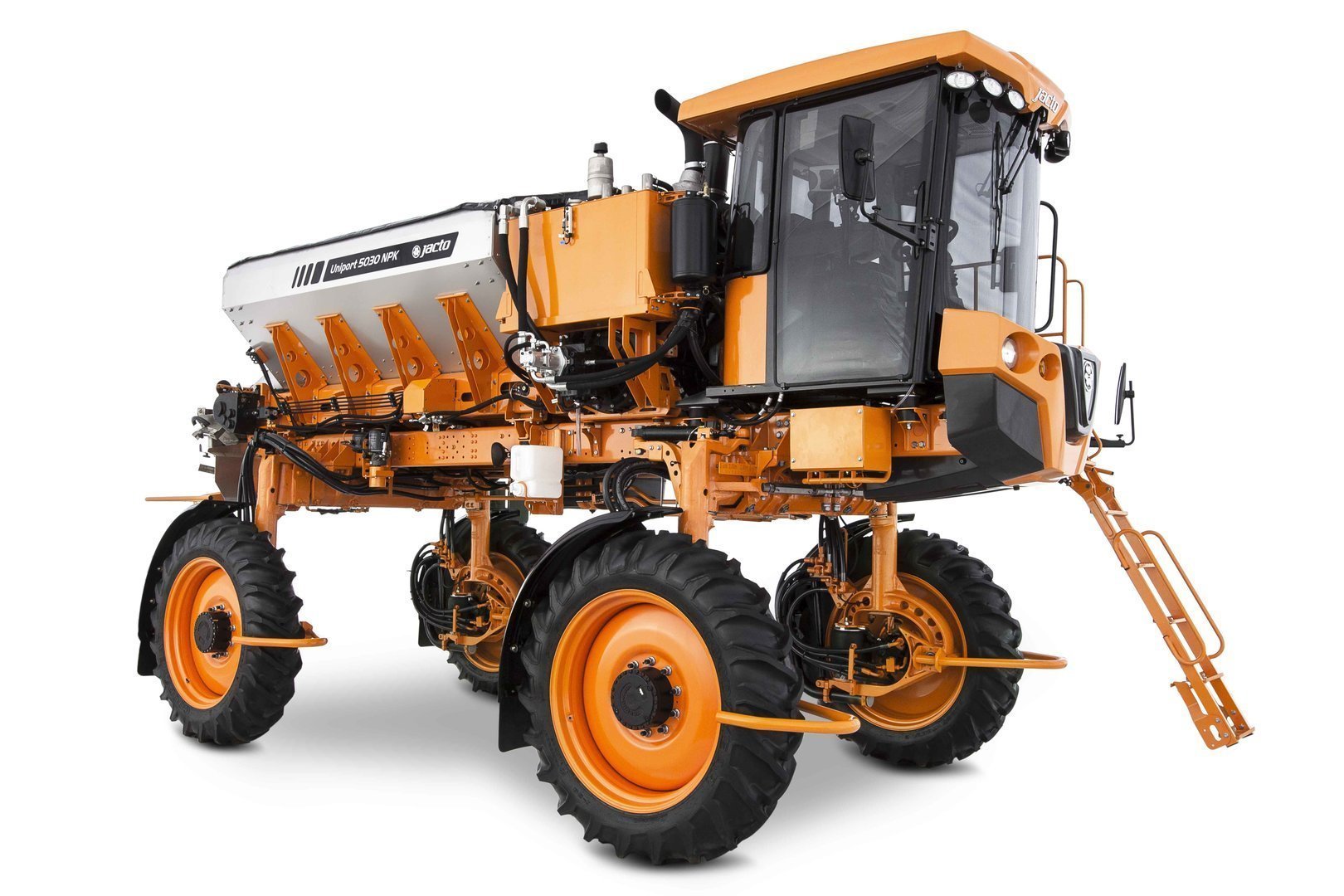 Calidad y precisión con la mejor tecnología, la abonadora automotriz con tolva de 5.000 kg de capacidad y faja de aplicación de hasta 50 m. Un equipo robusto que ofrece mayor precisión en la dosificación y uniformidad de aplicación de fertilizantes, además de posibilitar la aplicación de productos en polvo.