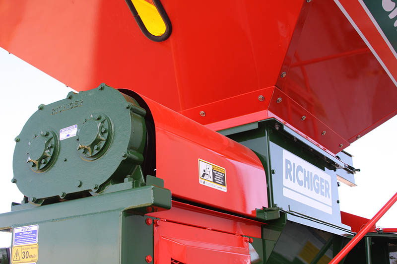 La embolsadora R950M está equipada con rolos quebradores, está especialmente diseñada para el manejo de grano húmedo quebrado o partido y su transformación en un concentrado de altísima calidad nutricional, ideal para utilización en feed-lots y establecimientos tamberos. La disposición de las cubiertas de chapa determina si el grano será rolado y quebrado, o si pasará entero al sinfín de compresión.