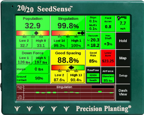 SeedSense es el monitor que cambia la manera en que usted gana dinero. Le da todo lo que necesita saber sobre la performance de su sembradora. Maximiza la velocidad sin comprometer la estabilidad. Reduce la compactación y controla la profundidad. Y sobre todo, Ud. puede ver todo lo que necesita saber sobre su sembradora, con precisión y en tiempo real.